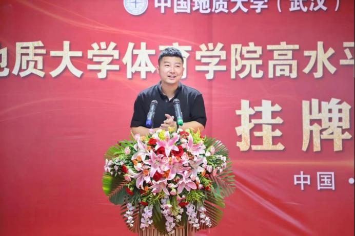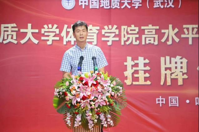 郎总首先对到来的一行领导表示热烈欢迎,并介绍了体育人俱乐部的建设与主要成果和特色体育的基本情况。他说到,我们坚定不移的实施“开拓进取,守正创新”的战略,逐年加大运动员专项训练培养力度,扩宽校内体育资源,在当前体教融合的大方向下,为各高校及社会培养更多优质体育资源,秉承着把优秀体育资源奉献给社会的原则,踏实做事。中国地质大学伟德体育 田径项目高水平运动队训练基地的挂牌,意味体育人俱乐部在合作创新上又是一个新台阶。体育人俱乐部将发扬“地大精神、育人传承”的八字方针,与地质大学伟德体育 共同联手,再创竞技水平新纪元。