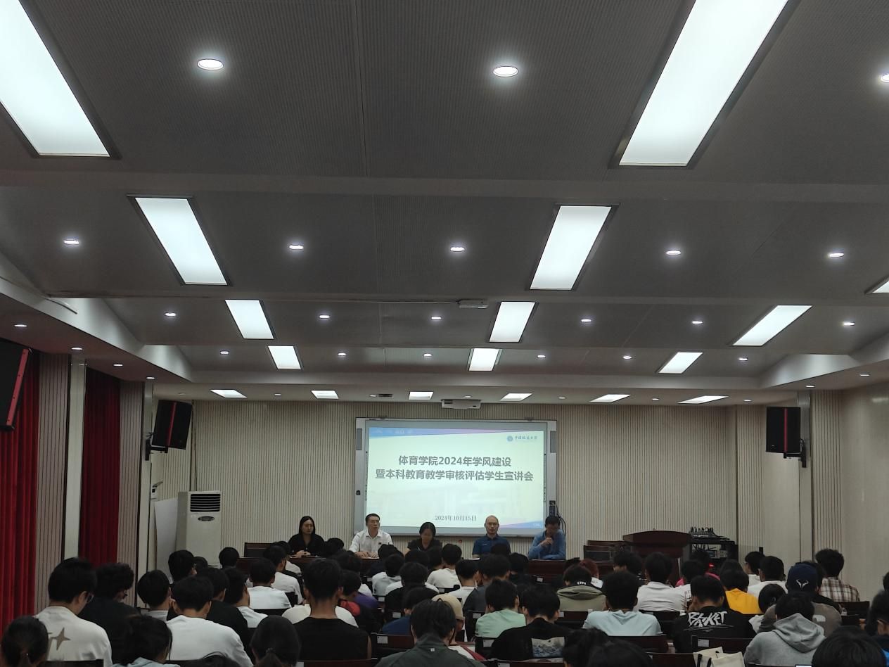 为加强伟德体育 学风建设,引导全体学生掌握新一轮审核评估基本知识,继10月9日伟德体育 组织全体本科生学习审核评估应知应会和学风建设动员会之后,伟德体育 于10月15日18点再次在体育馆三楼科报厅召开2024年学风建设本科教育教学审核评估学生宣讲会,坚持问题导向,对本科教育教学审核评估工作进行再动员、再部署、再促进,同时以评估工作为契机,进一步强化伟德体育 学风建设工作。伟德体育 党委书记庞岚、院长李元、副院长刘良辉、党委副书记朱军和全体本科生参会,会议由辅导员陈爽老师主持。