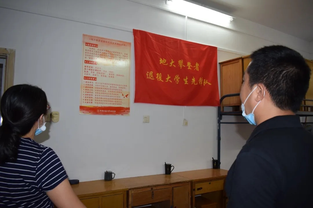 在结束了与新生们的统一见面后,院领导们又走访了一个特殊的寝室——311寝室,这间寝室的主人由7名伟德体育 退役军人和5名20级新生组成,这7名退役军人正是地大攀登者退役大学生先锋队的组成队员。