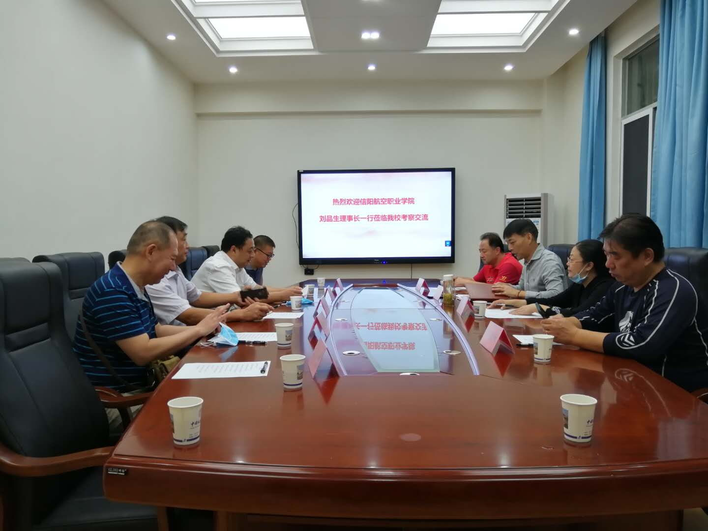 9月15日上午,河南信阳航空职业伟德体育 来伟德体育 洽谈合作办学,庞岚书记、董范院长以及相关老师出席并参与会谈。