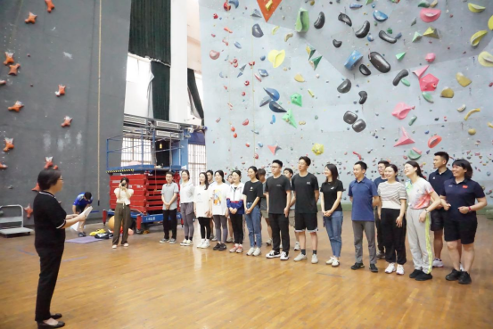 辅导员老师们还集中观看了我校攀岩运动员在速度攀岩、难度攀岩和攀石三个项目的表演展示,并在助教团队的带领下进行速度攀岩与难度攀岩尝试,通过亲身体验的方式感受攀岩运动的魅力与乐趣。
