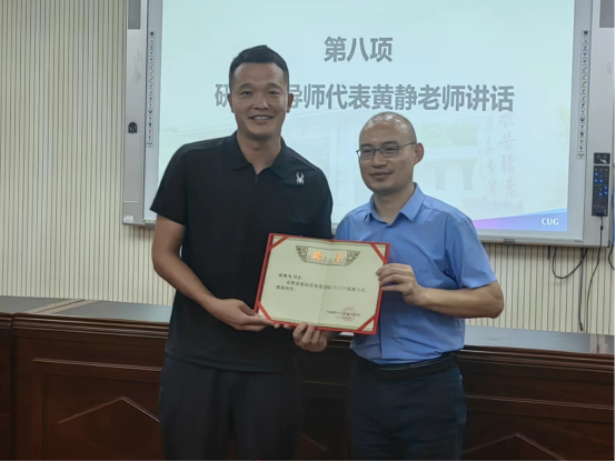 研究生导师代表黄静老师对研究生新生做出几点期望,一是明确目标定位,立志高远,贡献社会;二要提升能力,不断积累,刻苦学习研究是提高人力资本的重要途径;三要紧密团结同学,发现与学习他人优点,树立团队意识;四要加强导师沟通,探求学术无捷径,技能水平无近道,要有决心、恒心、耐心,有锲而不舍的学术追求和精神品质,要有强大的内心和直面压力的勇气和力量,去攀登学术殿堂的高峰。