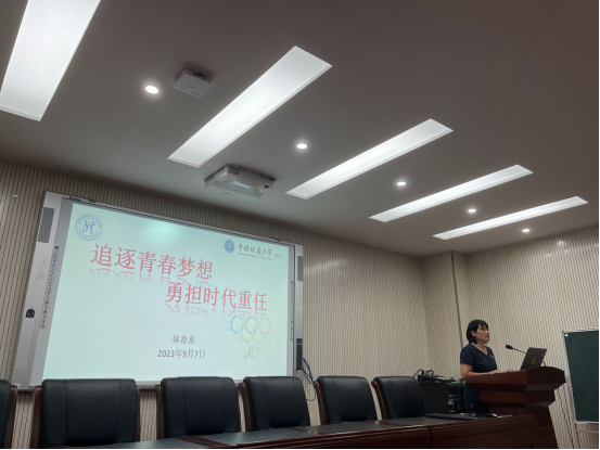 体育系主任黄静老师以“追逐青春梦想 勇担时代重任”为题,重点介绍了专业特色和本科培养方案解读,勉励大家要热爱专业,把握学科前沿,提升专业技能水平和能力,努力成为体育事业的指导者、传承者和引领者。