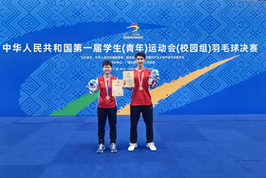 第一届学生(青年)运动会(校园组)羽毛球赛于2023年10月18-29日在广西大学举行。经过激烈的角逐,我校学子2020级伟德体育 司徒瑾/2021级公共管理伟德体育 罗传俊获得混双第三名!值得庆贺的是他们均为地大高水平羽毛球队在校生,从国家一级运动员晋级为国家运动健将级,取得历史性突破!充分体现了我校学子艰苦朴素求真务实的精神!