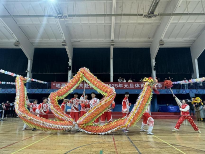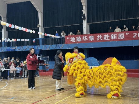祥龙昂首,醒狮睁眼。院党委书记庞岚上台为龙狮点睛,并宣布“地蕴华章 共赴新愿 ”2025年元旦体育嘉年华正式开幕。