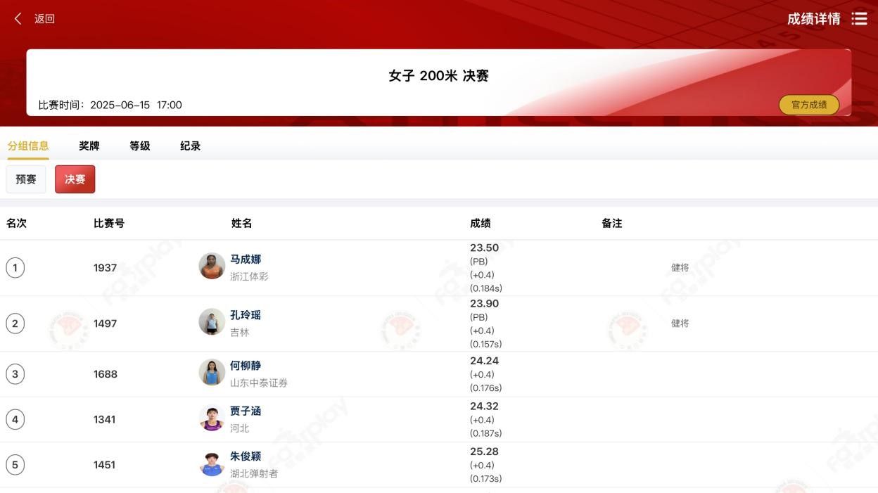 在6月14日上午进行的女子200米预赛中,我校伟德体育 2024级本科生马成娜同学在最后一组出场,跑出23秒81的赛季最佳成绩,预赛综合排名第二进入决赛。同单元进行的男子110米栏预赛中,我校公共管理伟德体育 2023级本科生陈天尧同学第三组出场,跑出14秒05的成绩,预赛综合排名第五进入决赛。