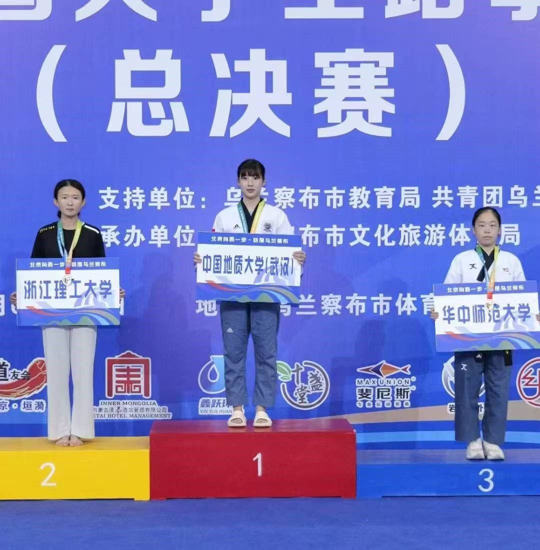 7月6日至11日,第19届中国大学生跆拳道锦标赛(总决赛)在内蒙古乌兰察布市体育馆举行,本次比赛由中国学生体育联合会主办,中国学生体育联合会大学跆拳道分会执行,共有来自全国155所高校的1090名运动员、教练员参赛。我校跆拳道队谢欣怡同学参加了甲组女子个人高阶品势和甲组女子个人段位品势两个项目的比赛。