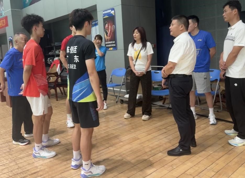 在中国羽毛球国家青年队集训基地,调研组与国青队总教练郭振东、主教练谌龙等当面交流,全面了解国青队在选材标准、训练体系等方面的情况,并详细介绍了我校在高水平运动员及保送生招生政策、运动队支持保障、体育人才培养等方面的优势。双方就羽毛球高水平运动员和保送生的选拔与输送达成一致合作意向。
