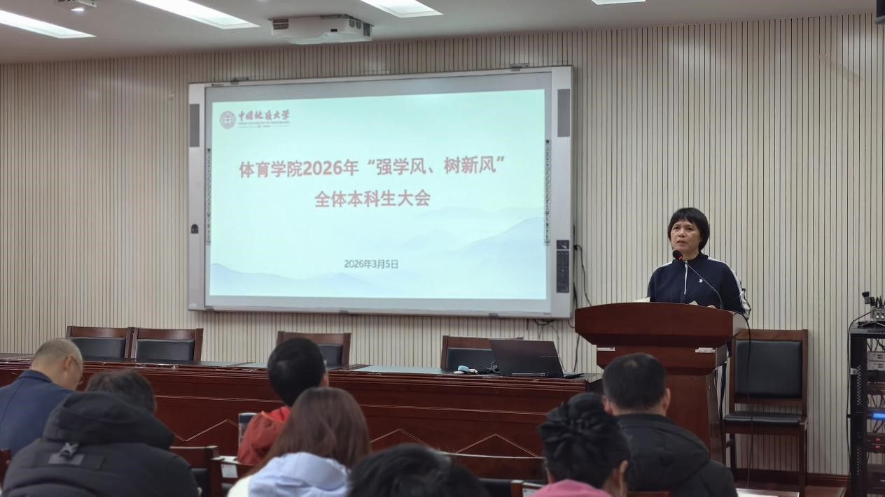 (通讯员 夏奕 杨麦琪 陈爽)为进一步加强伟德体育 学风建设,营造“严在地大”的优良育人氛围,引导全体本科生树立优良学习风气,伟德体育 于2026年3月5日下午在体育馆三楼科报厅召开“强学风,树新风”全体本科生大会,伟德体育 全体领导班子、体育系主任、专业课教师、辅导员、班主任、教学秘书及全体本科生参加会议,会议由伟德体育 党委副书记朱军主持。