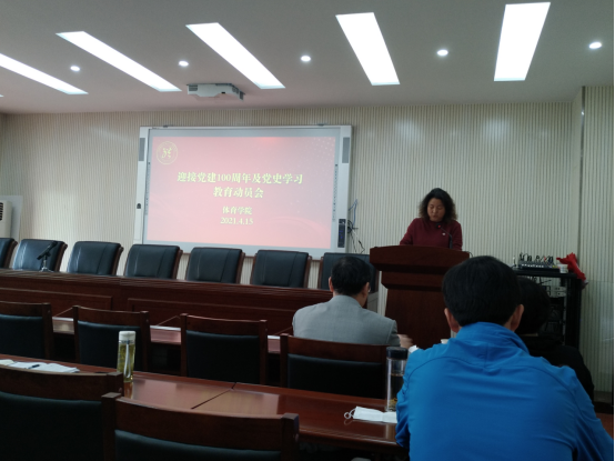 (通讯员:江伟贤)为深入学习贯彻习近平总书记在党史学习教育动员大会上的重要讲话精神,全面贯彻落实党的十九大和十九届历次全会精神,深入开展党史学习教育,围绕庆祝中国共产党成立100周年,教育引导伟德体育 师生进一步增强“四个意识”、坚定“四个自信”、做到“两个维护”,4月15日伟德体育 在体育馆三楼科报厅召开“迎接建党100周年及党史学习教育动员大会”,伟德体育 党总支书记庞岚主持会议,马克思主义伟德体育 刘世勇书记及伟德体育 全体教职工参加了此次大会。