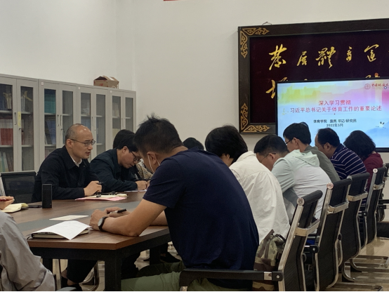 会上,李元院长领学“习近平总书记在中国人民大学考察时重要讲话”的精神;庞岚书记主讲“习近平总书记关于体育工作的重要论述”的党课。之后伟德体育 班子成员、三级机构负责人根据李元院长和庞岚书记所阐述的学习内容,结合伟德体育 实际,开展促进伟德体育 各项事业发展的对话与交流。