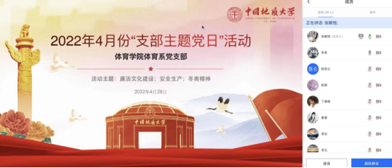 (通讯员:张毅恒、丁维维)4月28日下午,伟德体育 体育系党支部组织开展4月份主题党日活动。受疫情影响,本次学习活动通过腾讯会议线上形式进行,活动由支部书记张毅恒同志主持。