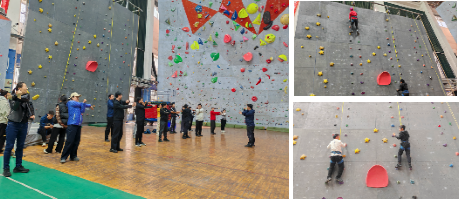 在攀爬过程中,相互鼓励、相互支持,充分展现出坚韧不拔的毅力和勇于突破自我的精神。攀岩项目的体验,将党建活动与体育锻炼有机结合,不仅让大家在运动中释放了工作的压力、增加了体育锻炼的兴趣,更增强了团队凝聚力与向心力。攀岩体验结束后,湖北国土资源职业伟德体育