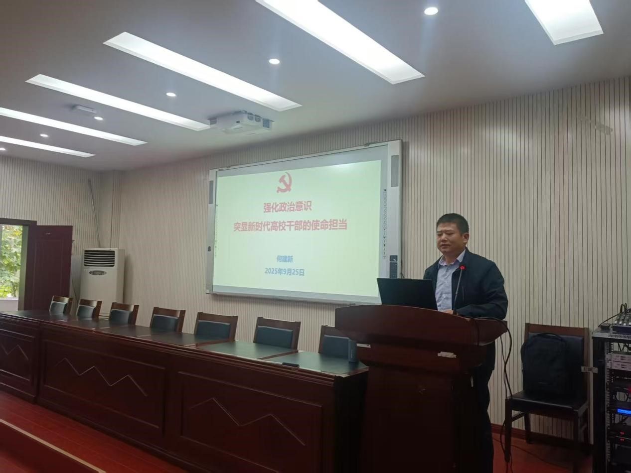 接下来,伟德体育 党委书记何建新以《强化政治意识,突显新时代高校干部的使命担当》为题讲授专题党课。他从高校面临的新形势新任务出发,深入阐述了建设过硬领导班子与干部队伍的重要性,强调党员干部要不断提升政治判断力、政治领悟力和政治执行力,敢于担当、善于作为,在教育强国建设中贡献体育人的智慧和力量。