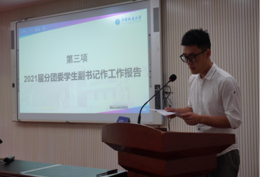 2021届学生会执行主席鞠长江作学生会工作报告。2021届学生会致力于打造“有温度、有高度、有态度”的服务型学生组织,建设一支胸怀理想、心系同学、品学兼优、作风端正的学生骨干队伍。