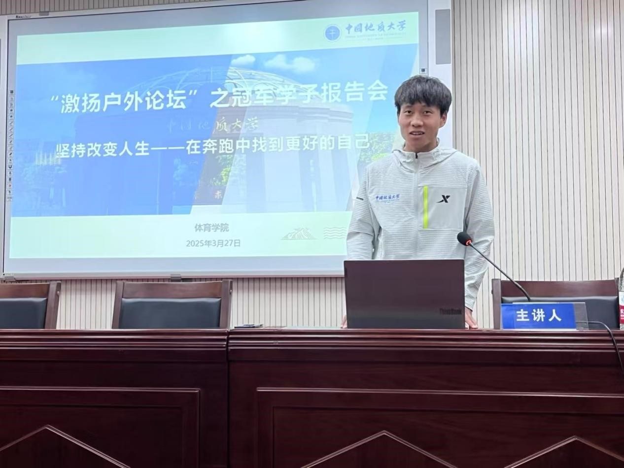 (通讯员:陈爽 刘博文)为发挥朋辈示范引领作用,赓续弘扬攀登精神,激励广大学生坚定意志、锤炼本领,3月27日,学校学生工作四部门联合伟德体育 共同举办求实青年大讲堂暨“激扬户外论坛”之冠军学子报告会,本次活动邀请2025年武汉马拉松国内组冠军何杰做报告。会议由伟德体育 党委副书记朱军主持,全校近200名本研学生参会。