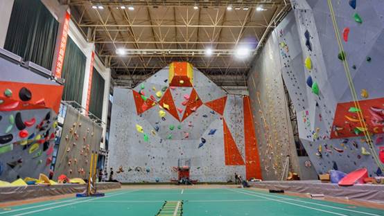 中国地质大学(武汉)攀岩馆岩壁最高15米,两边13米,最长屋檐5米,小屋檐3米半,国际标准速度赛道和速度赛岩壁,高15米,倾斜度15°以及8组标准抱石墙。岩馆内配备一间专业的训练房,在训练房里有大斜板、大屋檐、直板、自制的指力板等一系列的专项技术练习的场地。目前是国家攀岩集训队、湖北省攀岩队的训练场地,也是国内高校最为专业和完备的攀岩馆。