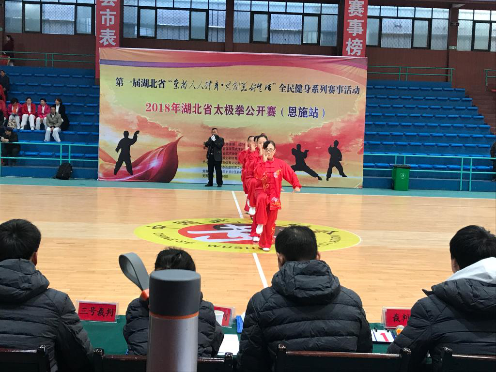 11月3-4日,第一届湖北省“崇尚人人体育•共创美好生活”全民健身系列赛事(活动)--2018年湖北省太极拳公开赛在恩施州利川市举行,来自全省各地的近300名太极拳爱好者共同参加了比赛。